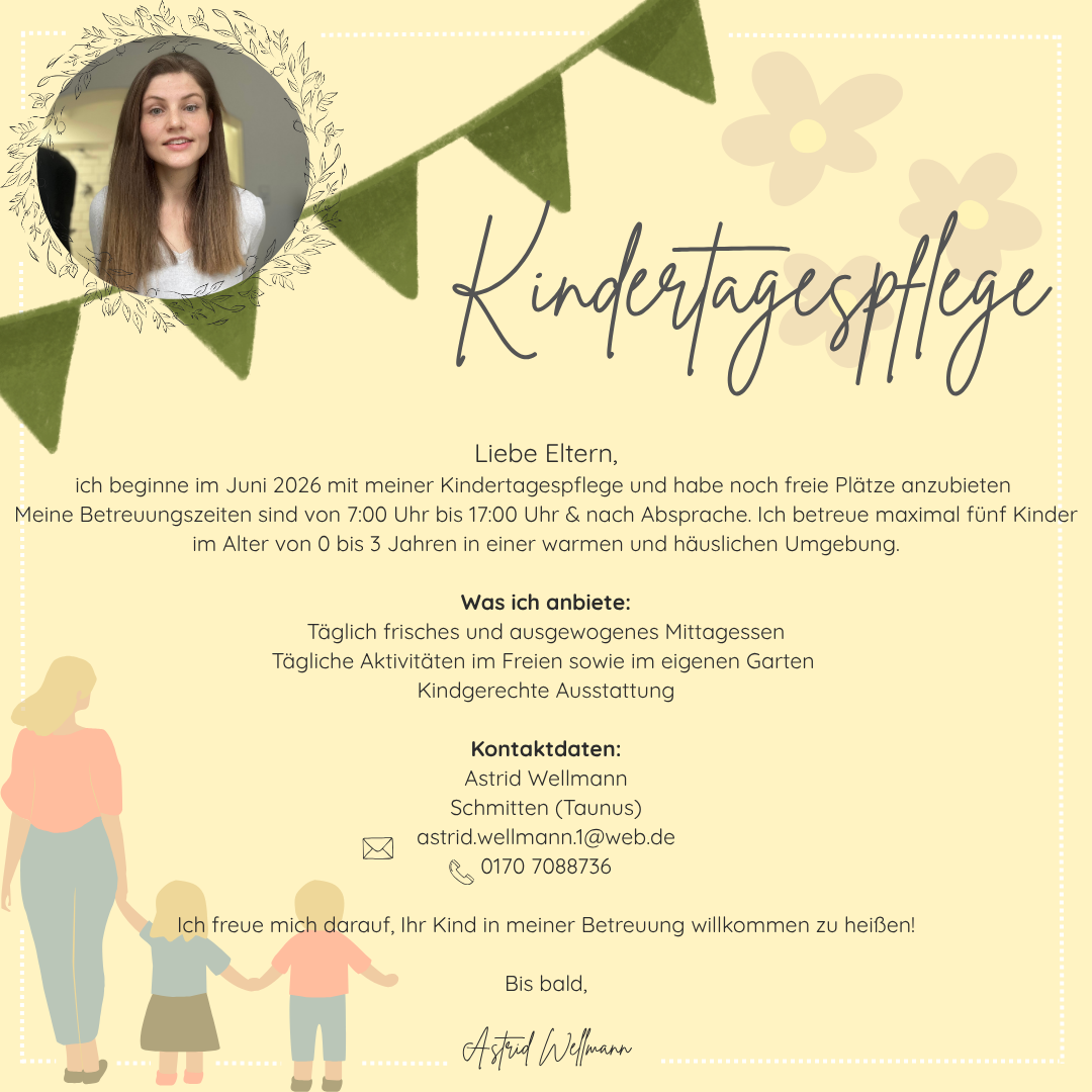 Neben der Betreuung von Kleinkindern bis drei Jahre in den Kindertagesstätten gibt es in Gemeinde Schmitten und Umgebung noch das Angebot der Kindertagespflege.